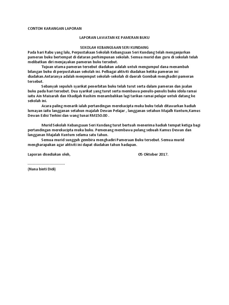 CONTOH KARANGAN DIARI SEHARI. Tuliskan sepucuk surat kepada pengurus pemasaran untuk memesan. Karangan Laporan Laporan Lawatan Sambil Belajar ke Pameran Buku.